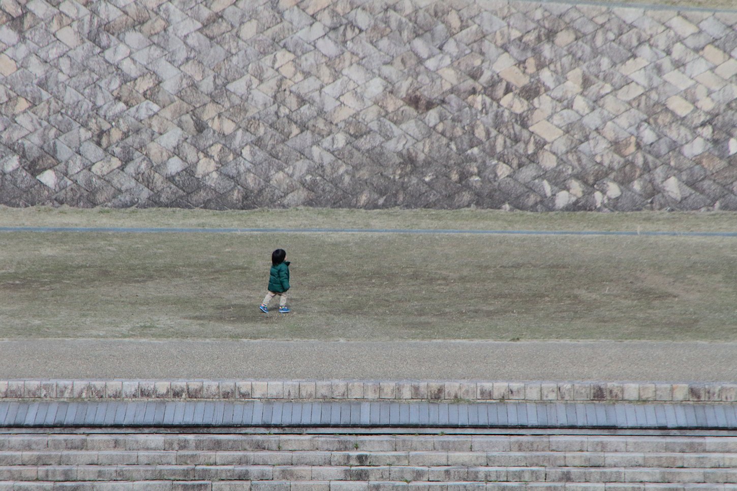 芝生(雑草)の緑がまだ薄い。