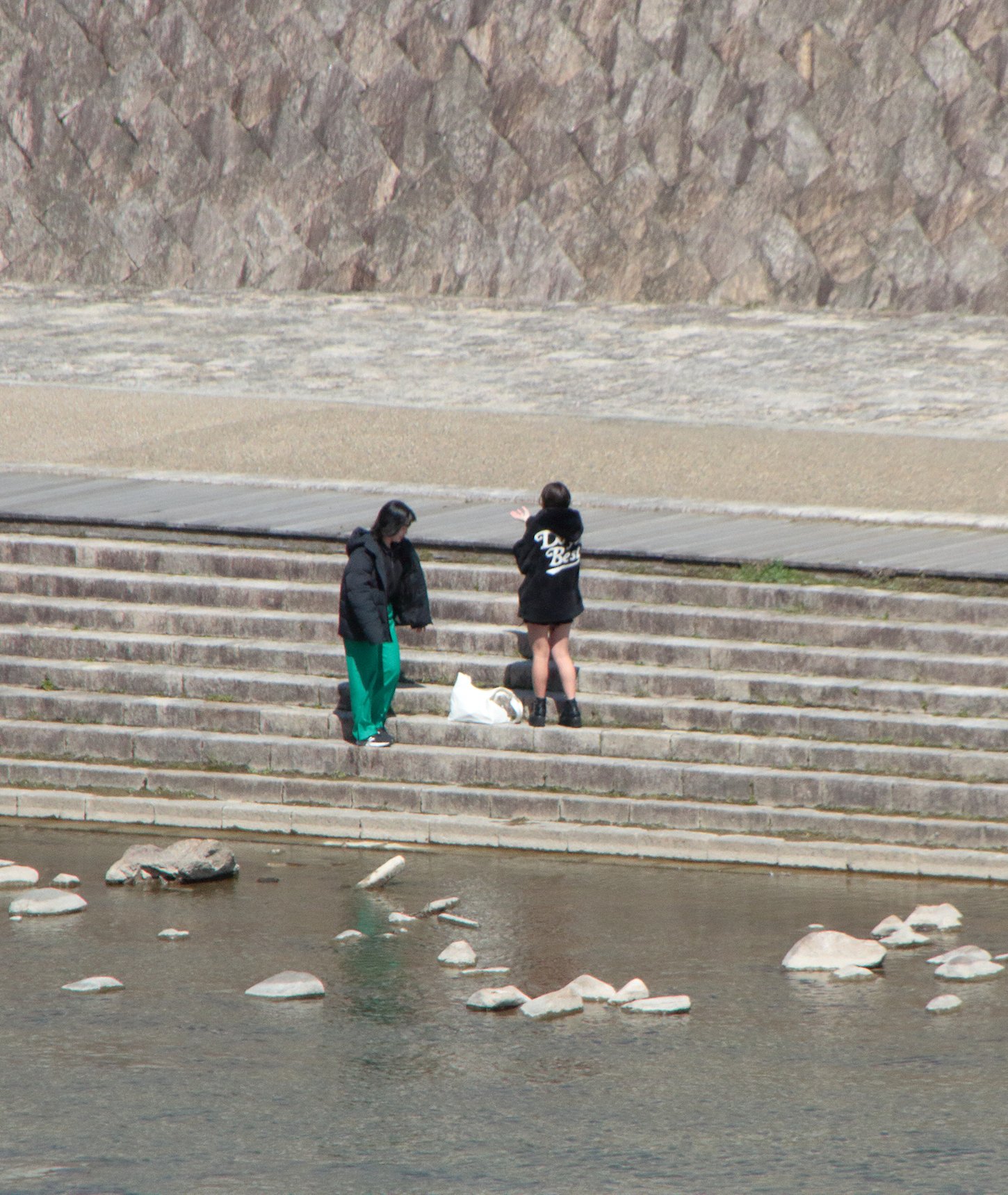 石垣にへばりついて動かない子もいます