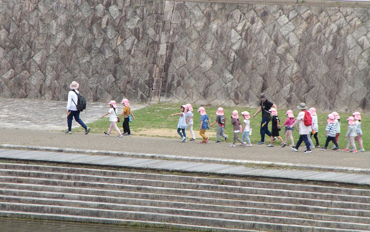 幼い子がついてきているか確認のため振り返る