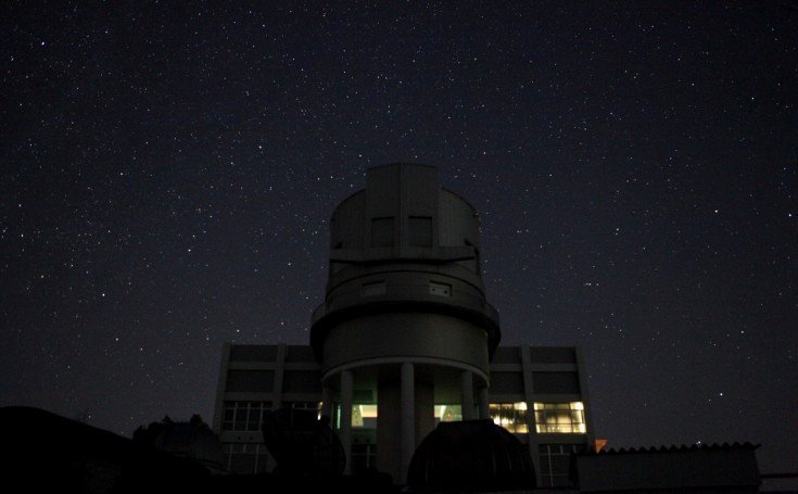 西はりま天文台 円筒形の建物内に「なゆた望遠鏡」(口径2メートルは公開望遠鏡で世界一)を設置