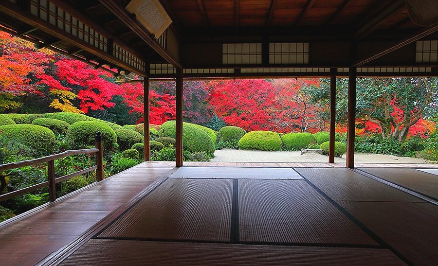 当時、京都ブームが到来する前の詩仙堂は閑古鳥が鳴く静けさで、平日だったせいか拝観者は数名しかおらず、屋内も庭園もひとり占めに近い状態。下の画像の縁側に、何を考えるわけでもなく、瞑想にふけっているのでもなく、1時間くらい座っていたような記憶がある。